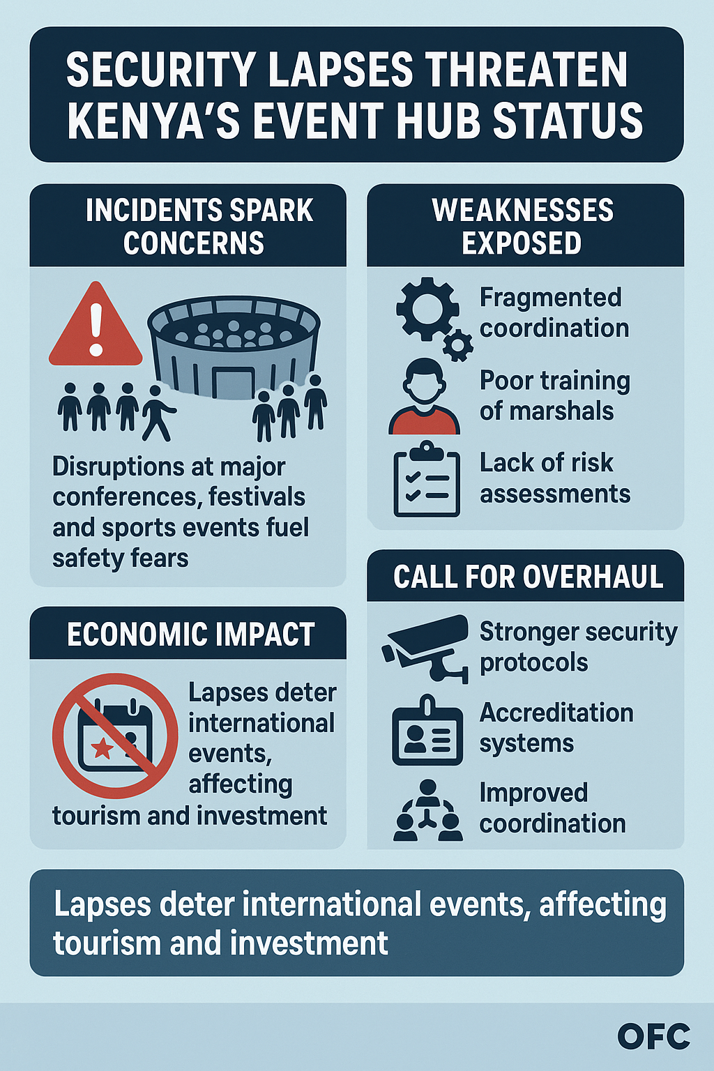 Kenya’s growing profile as a hub for international conferences, cultural festivals, and major sporting events hangs in the balance, threatened by a persistent and damaging weakness—event security lapses. The recent spate of high-profile disruptions, from chaotic crowd control failures to delayed emergency responses, has reignited fears that the country’s infrastructure and management systems are not keeping pace with its ambitions. While Kenya has successfully hosted large-scale gatherings in the past, these successes are increasingly overshadowed by incidents that put both safety and the nation’s reputation at risk. For a tourism and investment-driven economy, where marquee events serve as global shop windows, the stakes could not be higher. Any perception that Kenya cannot guarantee the safety of participants and spectators risks deterring international organizers, sponsors, and attendees, redirecting both revenue and influence to competing destinations.