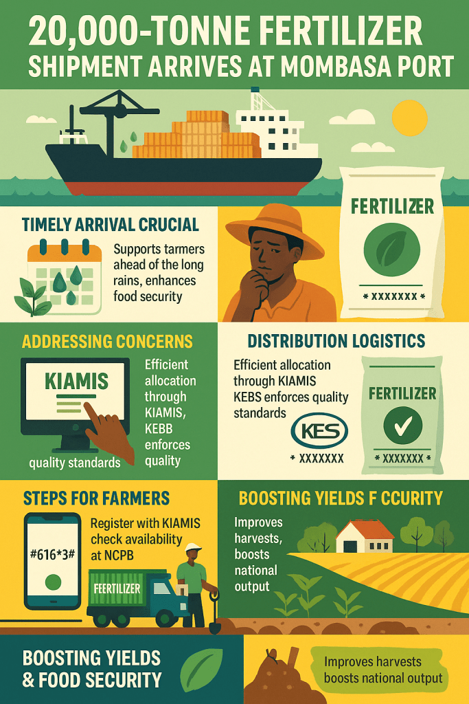 The arrival of a 20,000-tonne fertilizer consignment at Mombasa Port marks a significant milestone in the government’s efforts to support farmers ahead of the long rainy season, a crucial period for agricultural production in Kenya. The timely arrival of this shipment is expected to provide much-needed inputs to enhance food security and boost national yields. An additional 1,300 metric tons of fertilizer is expected soon, further reinforcing the commitment to ensuring farmers have access to essential inputs. However, concerns remain over the lack of transparency regarding the origin and composition of the shipment. The absence of details on the supplier and specific types of fertilizer included in the consignment may limit farmers’ ability to plan effectively, as different soil types and crops require specialized fertilizers for optimal growth. Additionally, past cases of substandard or expired fertilizers in the market have made quality assurance a priority for farmers and stakeholders alike. The government’s approach to addressing these concerns focuses on efficient allocation and swift distribution, primarily managed through the Kenya Integrated Agriculture Management Information System (KIAMIS), ensuring that only registered farmers receive their fair share of subsidized fertilizer.